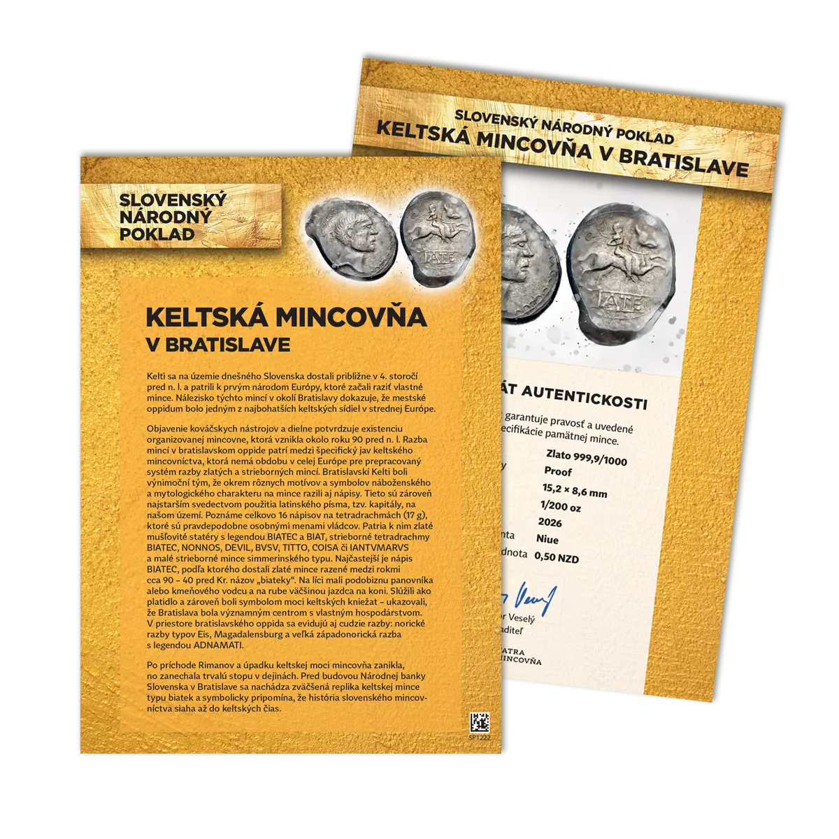 Zlaté tehličky Oltár Majstra Pavla z Levoče, Keltská mincovňa v Bratislave a Nitriansky kódex sú súčasťou úplne novej kolekcie Slovenský národný poklad. Ďalšie zlaté tehličky zo zbierky dostanete približne v mesačných intervaloch za cenu 79,99 € + 6,99 € poštovné a balné vrátane doručenia. Kolekcia teraz obsahuje 24 kusov zlatých tehličiek a v budúcnosti sa môže ešte rozširovať. Viac informácií o kolekcii nájdete tu. Podmienky objednávky si môžete prečítať tu.